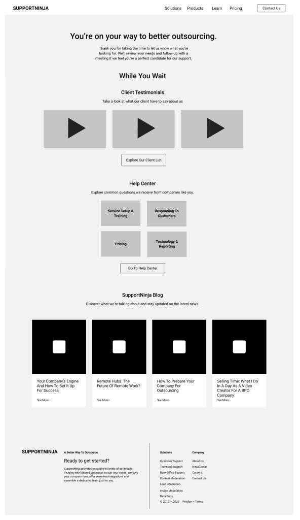 After completing our key form, we wanted to ensure our users had a way to get more information about our services. In addition to client testimonials, we offer help center guidance as well as our latest thought leadership.